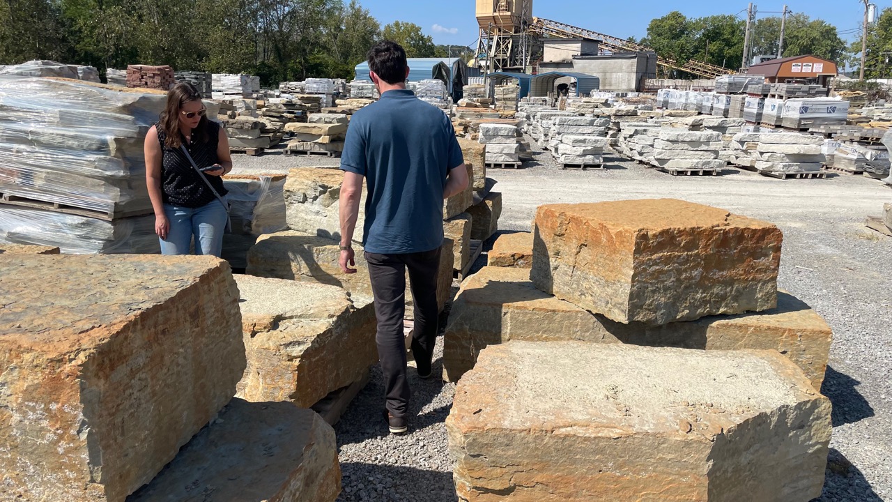 Architect, Janelle Kelpe (Chroma Architecture + Design), and landscape architect, Jack McGlasson (MKSK), selecting raw materials