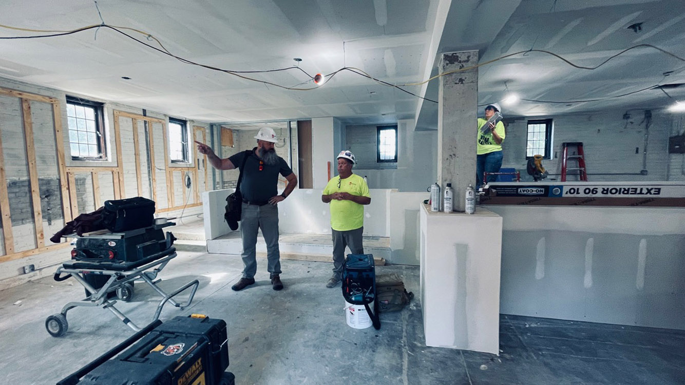 More progress on the print studio. Drywall nearly finished. Early September 2025. Beischel team inspecting.