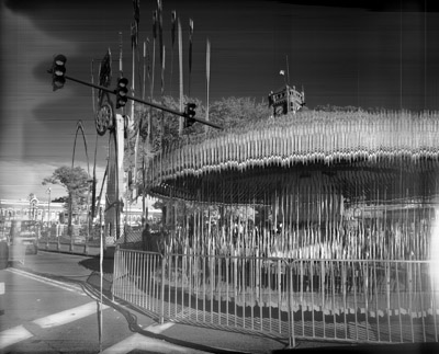 While dwelling on rural pastimes in Michigan and Ohio, Seder Burns' photographs provide a fractured view into the photographic medium itself. Using straight-up film photography and hand-made devices, Burns explores how time itself is a potent subject for art. This intimate exhibit continues Manifest's commitment to exploring image making in art across all media. Of his work Burns states: "This series of surreal photography of rural Ohio and Michigan pastimes is meant to question our perception of time and the veracity of photography. Taken with a unique homemade camera, similar in design to those that produced the first images from space, Ferris wheels in motion look like candelabras and people look like cardboard cutouts. These distorted images are created in camera and are not manipulated afterward. My photographs represent a different approach to recording time and space.” Seder Burns is an artist and professor of art. Most of his work is lens based, but he also works with a wide variety of mediums from paper-craft to 3D animation. He is currently a Lecturer of photography at the University of Michigan. He received his M.F.A. in Digital Arts in 2009 and M.Ed. in Career and Technical Education in 2006 from Bowling Green State University. Burns' photography is also included in Manifest's International Photography Annual 1.