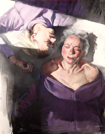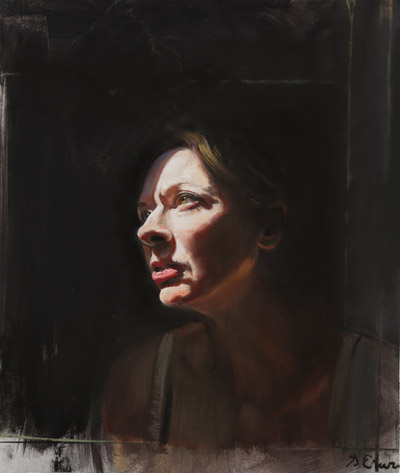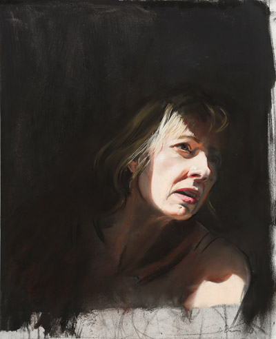 Of her work Erwin states: "My paintings, in pastel on Wallis museum grade paper, have twin goals of celebrating realism and re-invigorating portraiture. After fifteen years of self-portraiture, I am able to expand my boundaries to include family members, thanks to the use of photography. With this medium, I am able to capture images of far-flung relatives that allow me to pictorially explore classic family dynamics. The resulting compositions can be, at once, alluring and disturbing. The mother/daughter, and sibling relationships inspire paintings that potentially mine the universal complexities of family interactions. "