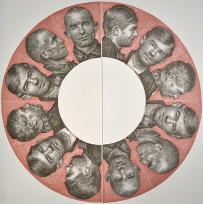 In 9 seasons Manifest's projects have included works by artists in 49 states and 37 countries. Starting with its 10th season, and as a result of its recent gallery expansion by 66%, Manifest is launching a new ongoing series of exhibits focusing on works by artists living in its own three-state region. This is intended to complement the ordinarily very wide geographical makeup of most Manifest exhibits with a closer look at what's being done here, now, in our own backyard. Manifest was founded, and continues to be operated by regional artists, so it is only fitting that, with more space in which to program, the organization should offer the Regional Showcase series. We feel this is important for the artists and the public living within reasonable driving distance of the gallery. It will give each a chance to show and share, and to gain perspective on our region's creative wealth as it relates to the broader art world. To launch the series, which will change in theme and scope from show to show, with three or four installments planned each season, we opted to survey the region for works on paper. The only criteria beyond being works on paper of excellent quality was that they were made by artists living in Ohio, Kentucky, or Indiana. Manifest's several-member blind jury process reviewed 261 works by 102 artists. Thirteen works by the following 11 artists from all three states were selected for exhibition and will also be featured in the Manifest Exhibition Annual publication (MEA) at the close of the season.