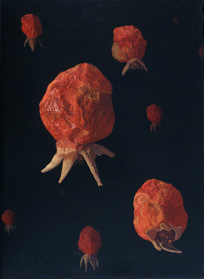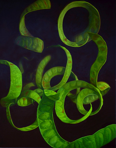 We are happy to share Nathan Sullivan's paintings in a solo presentation. His paintings evoke a sense of a microscopic universe populated by ordinary and familiar organic objects seemingly suspended in a state of playing out an important biological epic. The exhibit puts the gallery visitor in the midst of this drama, implicating them in the event, or making them the subject of these paintings' attention.