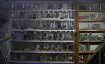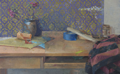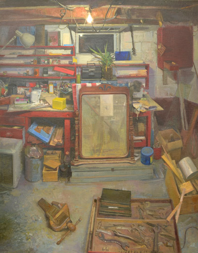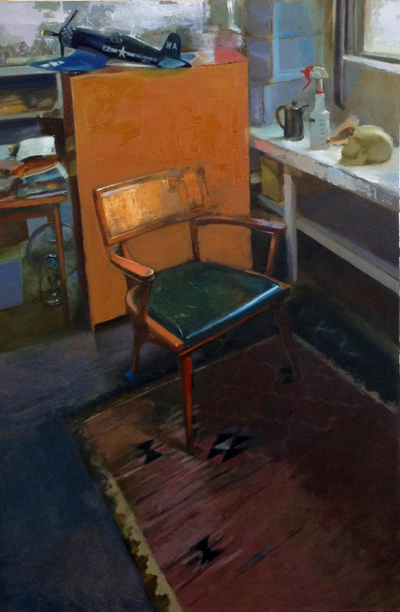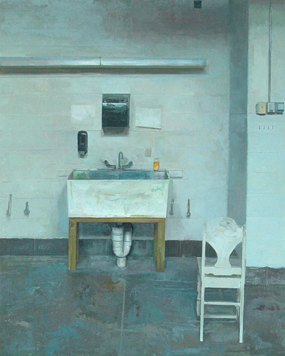 This exhibit of Matt Klos's work provides a mini-retrospective of his investigations of interior space through painting. As we have often found in contemporary perceptual painting, Klos's works echo the sentiment that amongst the mundane, everyday stuff of our lives exists incredible opportunity for eloquence and contemplation. The ten works in this exhibition offer impecable painting, and imagery that anyone can relate to. The tranformation of the subjects into works of art through paint serves as a filter by which the ordinary becomes sacred. Klos will discuss his work, background, and ideas about painting at a free public gallery talk on Friday evening, January 9 at 6:30pm. Of his work Klos states: "These works chronicle a dozen years of paintings that depict my views of the city, the suburbs, and studio environments where I have made art. These interior paintings share qualities and yet each environment offered me different opportunities for investigation. The resultant paintings display both my personal creative vision and pictorial anecdotes that were born by enacting a creative process within a definitive space. The latter aspect of the creative process, those aspects of each environment that imprinted upon my creative work, is the impetus for this exhibit. Painting the interior continues to be my chief interest although I have painted landscapes and made constructions that diverge from perception in recent years. Interiors encapsulate many of my core interests in painting, namely complex lighting constructs, opportunity for a long duration of observation, geometric structure, a human element and implied narrative (mystery), varied color, conveying a mood, a modicum of control (not too much and not too little), a rich history, and the magical experience of looking with a discerning eye." Matt Klos is a painter of interiors and plein-air landscapes that have taken him to Stonington, Maine, New Brunswick, Canada, and the Brittany region of France. His works have been exhibited nationally and internationally and he was awarded Individual Artist Awards from the Maryland State Arts Council in 2008 and 2012. His work was selected for a solo exhibition award at the Prince Street Gallery in Chelsea, NY in 2011 and he received an Elizabeth Greenshields Foundation Grant in 2001. Klos teaches drawing and painting at Anne Arundel Community College and took a sabbatical in fall 2013 to work on two projects: to create paintings of dozens of dilapidated buildings at the Fort Howard Veteran's Facility in Edgemere, Maryland and to curate an exhibition entitled A Lineage of American Perceptual Painting, highlighting the works of the great American painter Edwin Dickinson and the subsequent generations of painters whom he influenced and inspired. The exhibition will be on view in spring 2015 at the Mitchell Art Gallery at St. John's College in Annapolis, Maryland. Klos received an MFA in painting from University of Maryland, College Park in 2004 and a BFA in fine arts from Columbus College of Art & Design in 2001. He currently lives in Baltimore, Maryland with his wife and three children.