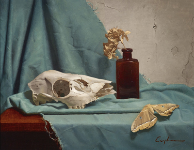 We vertebrates are really not all that different under the skin. The thing that cradles our concept of identity, and houses our intellectual and emotional organ–our command center if you will, the skull–has long been the subject of visual art. The articulation of our interest in the subject runs the gamut from cliché to horrific, from the ironic to the tragic, and all points between. Contemplating the human or animal skull is akin to contemplating a star-rich night sky. It can often serve as a talisman of self-reflection, of proof of mortality, endurance, and commonality. Our fascination with the skull goes far deeper than the common symbolism it is burdened by today, and broader than its past use in phrenology or to support theories regarding sexual dimorphism. Ultimately the skull is evidence, after all, that we are in fact made of dust. Manifest's seven-member jury reviewed 342 works by 131 artists from 32 states and 7 countries. Eleven works by the following 10 artists from 8 states were selected for exhibition and will also be featured in the Manifest Exhibition Annual publication (MEA) at the close of the season.