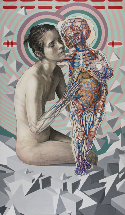 Of his work Christie states: "This exhibit explores the spectrum of human experience: from trauma to transcendence, from the concrete to the abstract. I believe that our lives start with trauma as we are brought into the world from the safety of our mother's womb. We eventually die, experiencing the loss of all that is dear to us. Yet transcendence and the experience of the sublime are rooted in this fleeting material existence. The divine is made evident through tangible and sensual experience; without our physical selves, we would not experience moments of wonder and the mysterious." Born and raised in New York City, Bryan Christie is an award- winning artist whose work has been exhibited internationally and featured in such publications as The New York Times, The New Yorker, TIME, WIRED, and Esquire. Bryan Christie's work is influenced by his unique background as a jazz musician, as an art director for Scientific American magazine, and as a child growing up around the turpentine and oil paints of his mother's art studio. His artwork investigates science's relationship to art—how the arts and sciences attempt to explain and give meaning to our world using logic, intuition, and emotion. His aesthetic focuses on the essential structures of the body and demonstrates awe in how it functions and is put together through nature's remarkable intelligence.
