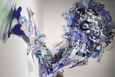 Of her work the artist states: "Referencing life cycles on both the macro and micro scale, maelstroms of cut paper personify the inevitability of raveling and unraveling, construction and deconstruction. The paper components form a physical manifestation of tumultuous mental spaces, brought to life by an obsessive layering of surface imagery, stylized motifs, and fragments of tension between melancholy and the sublime. Samantha Parker Salazar (b.1989) is currently the John Fergus Family Post-MFA Fellow and lecturer in the printmaking area at The Ohio State University. Salazar received her MFA from The University of Texas at Austin in 2014 and her BFA from Bradley University in 2011. She has exhibited and installed permanent projects at venues both nationally and internationally, and will be a resident artist at the Frans Masereel Centrum in Kasterlee, Belgium during Summer 2015.