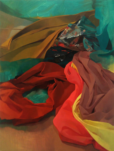 UNRAVEL ...How does the artist capture a fleeting glimpse using a process that spans over many hours, days, or even weeks? I investigate this question through my paintings, which often consist of many layers of failed attempts to capture specific moments. Imbedded in nearly every painting are several views of the objects and interior of my studio. In this sense the paintings are tangible documented histories of their own making, as honest and open as possible. During the paintings’ construction, a steady stream of new imagery constantly intrudes on the old, creating jarring juxtapositions. The resulting images simultaneously contain everything and nothing, creating a new visual realm which transcends the sum of its parts.