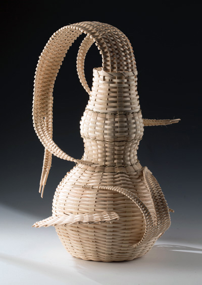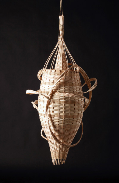 Elizabeth Runyon's large sculptural baskets are based on traditional Appalachian ribbed egg basket techniques. She works in reed and seagrass, natural basketry materials. Runyon is a Kentucky native who lives in Oxford, Ohio, and is a graduate of the University of Cincinnati. She has had solo exhibits at the Eva G. Farris Art Gallery, Thomas More College, Crestview Hills, Kentucky.; Fitton Center for Creative Arts, Hamilton, Ohio; and the Zanesville Museum of Art in Ohio. Her works have been included in many regional and national exhibition including Manifest's 10th season Regional Sculpture exhibit. She recently exhibited work at the Yeiser Art Center in Paducah, Kentucky, the Ohio Craft Museum in Columbus, and in a National Basketry Organization exhibition in St. Paul, Minnesota and Boston, Massachusetts. Her piece "Leap of Faith" was recently selected for inclusion in "After the Pedestal" at The Sculpture Center in Cleveland. Runyon is a member of the National Basketry Organization and Surface Design Association. More about Elizabeth and her work can be found online at nationalbasketry.org/elizabeth-runyon