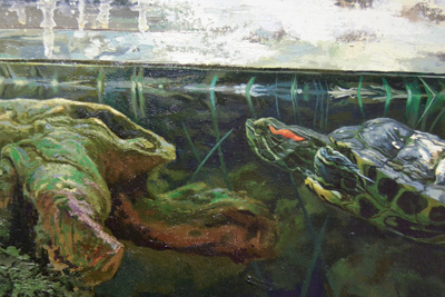 "Yves, as in Jacques-Yves Cousteau" ABOUT THE $5000 MANIFEST PRIZE All of Manifest's projects are competitive. The stiffness of the competition has increased in proportion to Manifest's growing reputation, multi-faceted mission, and international reach. Our mission to stand for quality, to create a system whereby works are judged with objectivity as a primary aim, and assembled with as little subjective curatorial agenda as possible has gained the respect of thousands of artists from all over the world, and a vast following of arts lovers, patrons, and supporters. We respect the creative principle of reduction (the jury process) as it is employed to achieve an essential conclusive statement for each exhibit we produce. This is what has led to the high caliber of each Manifest exhibit, and to the gallery's notable reputation. We believe competition does indeed breed excellence. With this principle of reduction in mind, we have been inspired by the intensity of jury after jury to narrow down a collection of entries to a strong end result. Therefore we determined five years ago to launch the Manifest Prize in order to push the process to the ultimate limit—from among many to select just ONE work. Manifest's jury process for the 6th Annual Manifest Prize included multiple levels of jury review of 932 works by 311 artists from 40 states, Washington D.C., and 18 countries by a total of 18 different volunteer jurors from across the U.S. Each level resulted in fewer works passing on to the next, until a winner was reached. The size and physical nature of the works considered was not a factor in the jury scoring and selection. The winning work is entitled "Yves, as in Jacques-Yves Cousteau" by Joshua Gomez of Chicago, Illinois. It will be the recipient of the 6th annual MANIFEST PRIZE, and will be presented in the Central Gallery from December 11 through January 8, 2016. It will be accompanied by several juror statements and the artist's statement. About the artist: Joshua Gomez is a Chicagoland native. Growing up in the southwest suburbs he showed an interest and aptitude for the visual arts. He eventually took to the city to live and study painting at the American Academy of Art. During his studies he developed and honed his knowledge, history and skills of his craft. Through this he has developed a simpatico with contemporaries and initiated self-orchestrated group shows under the title “Below”(derived from the first show being in a basement space). Joshua currently works building up his body of work and leads the paint department of a Chicago based production studio. Ten semi-finalist works (runners up to the winner) will also be featured in the season-documenting Manifest Exhibition Annual publication (MEAs12). These are works by Tamie Beldue (Black Mountain, North Carolina) with two works, Ashley Blalock (El Cajon, California), Xia Gao (Okemos, Michigan), Philip Jackson (Oxford, Mississippi), Matthew Lee (Milwaukee, Wisconsin), Jack Nixon (Wilmette, Illinois), Travis Townsend (Lexington, Kentucky) with two works, and Millicent Young (Ruckersville, Virginia).