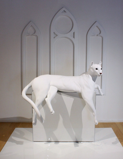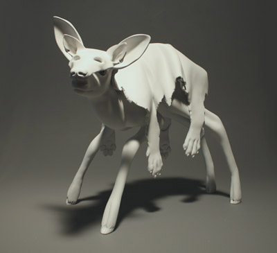 This exhibition of Jessica Teckemeyer’s work is one of 8 selected from among 137 proposals submitted for consideration for Manifest’s 13th season. Of her work the artist states: "...Humans are domesticated animals. As social creatures, we combat reason versus instinct. These sculptures represent archetypes. Through translating a human experience into the form of an animal, we look at ourselves from another viewpoint. Animals are my focus because they are devoid of race, gender, and body politics. Jessica Teckemeyer creates mixed-media animal sculptures to explore the multiplicity in human nature. She maintains an active studio practice and serves as an Assistant Professor at Clarke University in Dubuque, Iowa. Teckemeyer received her Master of Fine Arts degree from the University of Minnesota - Twin Cities in May 2010. Teckemeyer's sculptures have been featured in seven solo exhibitions and over forty group exhibits. Her work has exhibited nationally and internationally, including the cities of: Monaco, France; Montevideo, Uruguay; New York, NY; South Orange, NJ; Santa Ana, CA; Baltimore, MD; Chicago, IL; Tallahassee, FL; Cincinnati, OH; Denton, TX; Minneapolis, MN; and Des Moines, IA. She has received numerous awards and grants including the Third Place Founders Award at the “39th Rock Island Art Guild Exhibition” at the Figge Museum in Iowa, Best in Show for the “Social & Politically Engaged Art” at the Reece Museum in Tennessee, Second Prize at the “Tallahassee International” hosted at the Florida State University Museum of Fine Arts, and a $9,000 Iowa Arts Council Grant supported through the National Endowment for the Arts. Teckemeyer has fabricated sculptures for internationally known artist Siah Armajani since 2009. Prior to graduate school, Teckemeyer worked in the sculpting, mold making, and painting departments at "Tivoli Too" a 3D design and production studio located near Minneapolis, MN. She earned her Bachelor of Fine Arts degree at Minnesota State University Moorhead in 2004.