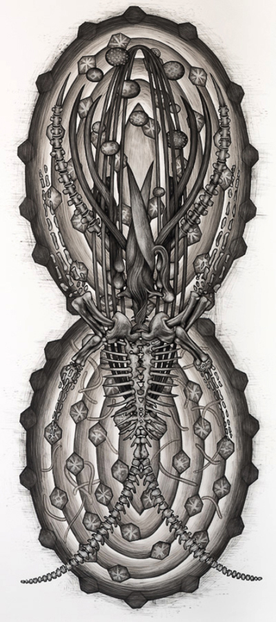 This exhibition of Mark Pomilio’s drawings is one of 8 selected from among 137 proposals submitted for consideration for Manifest’s 13th season. In his proposal to Manifest Pomilio stated "Through these works and their abstract associations I attempt to expose the mystical beauty, harmony and intrigue found within naturally occurring systems of growth. Ultimately, it is my desire to expose nature at its magnificent core." Reading this one might have thought it was a statement by a landscape painter. The fact that the work was, in fact, geometric abstraction blended with what could be landscape architectural design surely ignited its appeal for selection. Eleven of Mark Pomilio's drawings will occupy the North Gallery. Ranging from delicate and small study-like drawings, through medium and large-sized finished sculptural drawings, the works nod to the formulaic works of Sol Lewitt, but maintain a satisfyingly distinct identity for being exactly what they are meant to be. Of his work the artist states: "My artistic interests are fueled by a desire to create artwork, which mirrors naturally occurring systems in our world. In mirror I am referring more to physical processes rather than mimetic duplication. I find inspiration on a myopic level by attempting to imitate cell repetition and cloning. The origin of this research has been formulated through a series of simple geometrical equations. These equations have yielded a group of 'parent' rudimentary geometrical forms. One or several of these forms are multiplied and folded equally throughout the pictorial field. Through this process, a formal pictorial structure is born. The resulting balance and symmetry has a visual equivalency in how we read the meditative qualities of a reflective pool, or a religious icon.” Mark Pomilio's current artistic output focuses on creating images, which embody principles of geometry, fractals, cloning, single and multiple cell manipulation. He seeks to understand how these human, abstract associations can expose beauty and meaning within naturally occurring systems of growth and procreation in our natural world. It is his desire to expose nature at its magnificent core. These interests have led to invitations to lecture nationally, on topics as diverse as art and mathematics and the role the visual arts can play in understanding the social ramifications of advances in the Life Sciences. His artwork has been featured in solo museum and gallery exhibitions nationally and internationally, including Xu Beihong Art Academy, Renmin University of China, Beijing, China, the Chapelle Saint-Louis de la Salapetriere, in Paris, France, and Art Resources Transfer, in New York City. Originally from Philadelphia, Mark Pomilio is currently living in Phoenix, Arizona where he is an Associate Professor within the School of Art, at Arizona State Universitys Herberger Institute for Design and the Arts. Learn more at: markpomilio.com