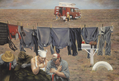 This exhibition of Jay Senetchko’s work is one of 8 selected from among 137 proposals submitted for consideration for Manifest’s 13th season. When Jay Senetchko's grandmother passed away in December 2012, he was given her collection of Time Life magazines from the 1960s, an era she had once described as being 'the happiest of her life'. This declaration, combined with the name of the magazine, forms the title of this series. Each painting is based on images that are cut away from their associated text. New narratives are formed by recontextualizing them into black and white, and colour collages. Selected images are then transformed into paintings that are part collage, part photograph and part painting, maintaining distinctions between each medium while drawing parallels between them. The goal in both the creation of the collages and the paintings is not a faithful depiction of either an historical or fictitious event, but the creation of a new narrative for exploration and interpretation. The viewer is welcomed to wade through confusing and sometimes contradictory visual information in an attempt to make sense of what they are seeing. The result are pictures that are unbalanced and uncomfortable, and simultaneously familiar and unfamiliar as they visualize the pathological nature of the North American dream. Through the reoccurring themes of nuclear family, violence, racial tension, labour and leisure, the dreamlike aspirations of a 1950-60's North America are presented, but never reached. Rather, they parallel many of the social tensions and obstacles we face today, but in unsettling, and at times nightmarish iterations. Of his work the artist states: "We all have a relationship with the past. Be these memories positive, negative or neutral, they are all inaccurate. We distort events mentally as a matter of course as soon as they have happened, and the further they recede in our private histories the more distorted they become. Considering how influential our individual pasts are in framing our personal presents, how we recall an event can have dramatic consequences upon our engagement with our present and future selves. The Best Of Life explores the dangers of our nostalgic, romantic, and distorted relationship with the past and its impact on our present lives by drawing contrasts and parallels between a halcyon era of history and contemporary Western life.” Born in Edmonton, Alberta, Jay Senetchko now lives and works in Vancouver, British Columbia. He is a University of Alberta graduate (1997 - Bachelor of Commerce with Distinction) and spent several years as a professional soccer player in Edmonton and Montreal before pursuing entrepreneurial interests in Canada and the United States. In 2000 he moved to Vancouver and received a Diploma of Classical Animation from the Vancouver Film School in 2001. Primarily self-taught, his painting has been strongly influenced by apprenticeships with both Gideon Flitt and Odd Nerdrum. His work has exhibited since 2002 and shown in North and Central America and Europe. Recent awards and events of interest include an honourable mention in the 2013 Kingston Portrait Competition, shortlist for the BP Portrait Competition (2011, 2012, 2015), shortlist for the Kurt Beers 100 Painters of Tomorrow publication (2013), shortlist for the Royal Academy Summer Exhibition (2015), inclusion in the recently published The Nerdrum School (a collection of paintings by those who have apprenticed with the Norwegian painter Odd Nerdrum - 2013), and 1st place in the juried 2012 Painting on the Edge competition sponsored by the Canadian Federation of Artists. He is the author of Making Pictures Speak: Composition for the Visual Arts, a textbook on perspective and composition for visual art; as well as the adult storybook Fishes and Wishes. He is currently developing another storybook, The Dragon and the Unicorn: An Ideological Fairytale. He has been teaching life-drawing, perspective, composition, colour theory and art history at Vancouver Film School since 2002, and teaching painting privately since 2003.