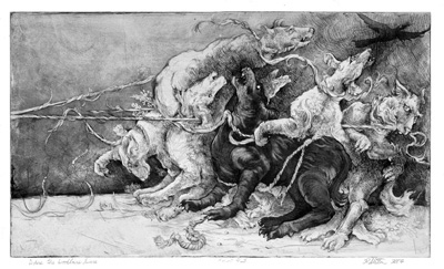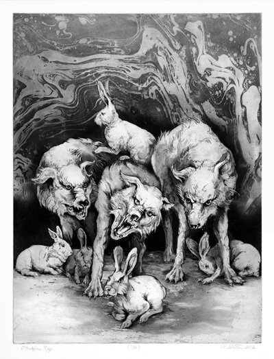 This exhibition of Ralph Slatton's work is one of 8 selected from among 137 proposals submitted for consideration for Manifest’s 13th season. Of his work the artist states: "My influences are considered fantasy Gothic, an often dark view of fable, humor, and lore. What better vehicle to convey these ideas than those found in the world of animals. Their sense of balance and gravity are beautifully choreographed. Their expressions are inscrutably humorous, but always raw, with unbridled presence. As such, my animals elusively disguise some moral truth, human condition, personal dilemma, or conundrum. Those who view my work often respond with opposite reactions. Some experience humorous animals, while others see sinister ones. This often occurs in the art of ancient cultures, where humorous icons carry serious content. For example, the cute plump dogs found in Pre-Columbian art would at first glance appear whimsical. On the darker side, the dogs are supposedly eaten by their masters, during the journey to the underworld. It is my intention to take the viewer down a visual and psychological rabbit hole. A place where animals wear disguises of both the strong and weak, experiencing the freedom of entrapment, and generally revel in the dark side of human foibles. ” Ralph Slatton was born in 1952 in an old farm house, surrounded by the cotton fields of Trumann, Arkansas. He was a descendant of both Far Eastern and Southern culture, as his mother was a native of Yokohama, Japan, and his father a resident of Northeast Arkansas. Slatton earned the BFA and MA degrees from Arkansas State University and the MFA degree from the University of Iowa School of Art and Art History. While working as Assistant Registrar at the Iowa Museum of Art, he served as courier for a large exhibition of African art to the Taiwan Museum of Art in Taichung. Working with the collections greatly influenced his interest in animal imagery and symbolism, which is a major theme of his work today.