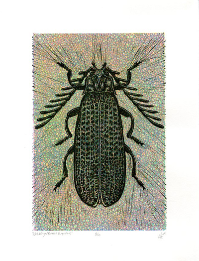 BUG-INSECTUM “As Gregor Samsa awoke one morning from uneasy dreams he found himself transformed in his bed into a gigantic insect.” The number of insect species on our planet is believed to be between six and ten million. While spiders are not insects, our exhibit is titled in order to include them (of which there are estimated to be 35,000 different species), as well as any other similar creature one may call a 'bug'. For many people, bugs are notorious. They freak people out, even the ones that don't readily sting, bite, or infect. Some do massive damage to people, other animals, homes, and each other. But by and large they are the dominant denizens of this planet, mysterious and ubiquitous. Perhaps we are lucky they tolerate us at all. This show honors them, both in all seriousness and in light-hearted play. After all, without them we'd likely not be here at all. Manifest invited artists to submit works which in some way address the theme of Bugs, including any and all insects, spiders, and similar creatures large and small, real or imagined. For this exhibit 81 artists from 34 states and Washington, D.C. submitted 271 works for consideration. Eleven works by these 9 artists from 9 states were selected by a blind jury process for presentation in the gallery and the Manifest Exhibition Annual publication.