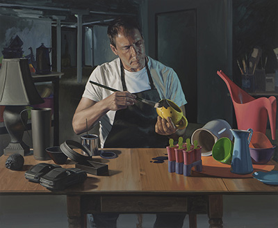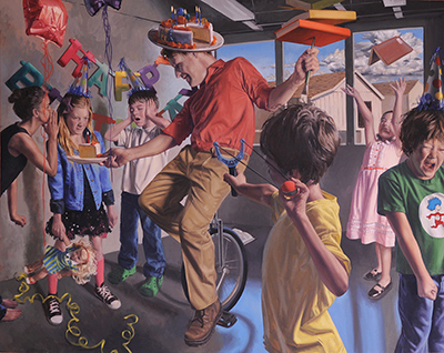 Storytellers and Other Works Perin Mahler is an educator and fine artist. He earned a Bachelors degree in Philosophy from Trinity College, Hartford and an MFA in Painting from Queens College, CUNY in New York City. Over a more than twenty-year career in education, he has taught at several colleges and universities including The University of Cincinnati, The Art Academy of Cincinnati, Kendall College of Art and Design in Grand Rapids, Michigan and Grand Valley State University in Allendale, Michigan. More recently he has Chaired the MFA program in painting and drawing at Laguna College of Art and Design, where his title is Chair Emeritus. There, he designed the curriculum around issues in figurative art including seminars in narrative painting as well as Art History and Pedagogy. He is currently teaching Figure Painting at California State University, Long Beach. His work is represented in several museum collections as well as prominent private collections. He has had numerous group and one-person exhibitions around the country. In 2009, he was honored to be a finalist in the Outwin Boochever portrait competition at the National Portrait Gallery in Washington, DC. His current body of work, titled Autobiographies, is a series of large single and multi-figure paintings dealing with personal subjects including narratives from domestic and professional experiences. Of his work the artist states: "My work consists primarily of large scale narrative figure paintings which feature still life elements that amplify the themes of each image. The content in my work is personal, and the paintings are allegories of subject matter that relate to my life experience. They tend to be either multiple figure compositions, which explore the dynamics between individuals, or single figure pieces that are more introspective and iconic. I am inspired by crisis, and most of the paintings in this exhibit address the emotional impact that difficult events or personal interactions have had on me. The specificity of this content is veiled, however, and I hope to communicate a general emotional climate, imbued with equal doses of pathos and humor, that resonates with each viewer in an individual way instead of being a particular, documentary narrative. ” This exhibition is one of 6 selected from among 149 solo proposals submitted for consideration for Manifest’s 16th season.* * Special note: Our original season schedule included a fourth exhibit, a solo show of tapestries by Jiachen Liu from Hang Zhou, China. Regrettably this show has been deferred until a future date because of the coronavirus lockdown of Wuhan (where Jiachen was visiting family when the city was closed.)