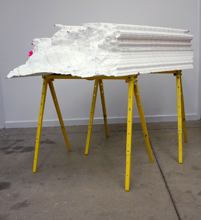 UNFINISHED / ACCIDENTS A splatter of paint, an accidental tear, spilled solvent, an inadvertent cut one inch too far on the miter saw—any number of random occurrences can ruin a work in progress... or, make it brilliant. Sometimes, despite the artist's initial reaction, a resistance to the guiding hand of the muse, it takes a fit of cussing, a day in retreat, or a week's respite before one returns to the studio find the accident transformed into a brilliant unintentional stroke of genius—unchanged yet utterly different. Often such serendipitous moments translate into full-blown discoveries and new directions in work, guiding artists into exciting uncharted waters. When this happens, either because the artist cultivated that flexibility early on, or adjusted to it on the fly, it is as if someone, or some thingelse caused the work—as if genii of chance abide in various corners of the studio awaiting their moment to help. Likewise, the decision of when a work is 'finished' is a common conundrum in the midst of the creative process. All too often an artist's momentum and blind drive forward with an original plan carries them far past the point when a work is at its best, resulting in overworking the substance or overstating the content, leaving no cracks through which the viewer may access and appreciate the living nature of the work at hand. In UNFINISHED / ACCIDENTS Manifest set out to assemble an exhibit showcasing works of all kinds which represent the artists' astute recognition of the quality of a work at once unfinished yet utterly alive with quality, as well as artists' acceptance and incorporation of brilliant accidents into 'finished' works.