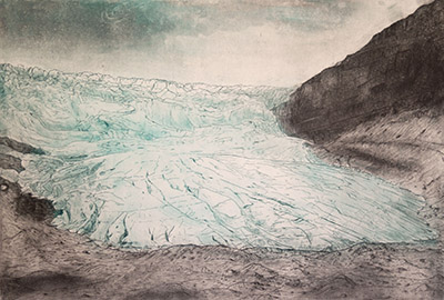 Kelsey Stephenson is an Edmonton (amiskwacîwâskahikan) based artist working with ideas of place-based memory and identity, and the changes imposed on landscape through human agency over time. Her recent projects encompass installation and multimedia practices, often utilizing printmaking as a jumping off point for her work. She has exhibited her work in solo exhibitions across Canada and in the USA, with recent group exhibitions including The 5th Bangkok Triennial International Print and Drawing Competition, Bangkok Art and Culture Center, Thailand; the 37th Bradley International, at Bradley University (Illinois, USA); and the 2018 Okanagan Print Triennial, in Kelowna, BC. Kelsey holds a Masters in Fine Art from the University of Tennessee, as well as a Bachelors of Design from the University of Alberta. She has taught courses in printmaking at the Alberta University of the Arts (formerly known as Alberta College of Art + Design), and she currently teaches at the University of Alberta as an associate lecturer. Of her work the artist states: "My current work is rooted in photographic and lens-based print practice, examining historical aspects and context of film in archived imagery, and exploring contemporary alternative photographic processes in response. The repeat photography works on paper examine specific locations from the archive that are well known, and had history of long-time tourism promotion from the inception of Banff National Park to today, to express just how much glaciers have changed over the last 100 years... The more recent images I have taken in response play on that aspect of settling, tourism, and land use, but also question how much preservation of wilderness is possible when provincial policies allow oil and gas emissions, or coal exploration in the eastern slopes of the Rockies... Taken as a whole, the fragility of the multiple systems brought within the gallery becomes readily apparent. The silk panels waver and change as you walk by. The translation from real landscape, to photograph, to drawing, to negatives, and ultimately screen-printed imagery loses information at each step. The images remind viewers that our glaciers and water systems are not infinite and that each action is interconnected.” This exhibition was selected from among 182 proposals submitted in consideration for Manifest’s 19th season.