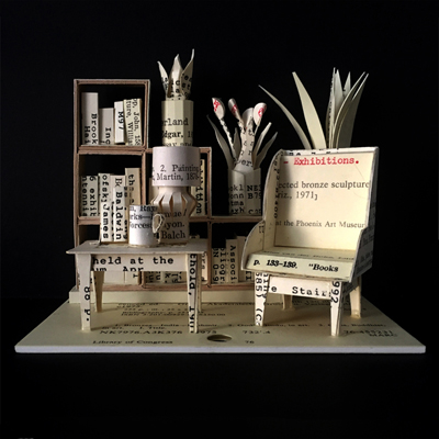 A table holds meals, and dirty dishes. They fill rooms like centerpieces, and then sit quietly off to the side. They are a place to gather and play, eat, talk. They stand steadfastly beside our beds holding pills and lamps and tissues and books and glasses. They wear cloths, or gather water stains. They host clutter, and collect graffiti, carved initials, and gum. We arrange things on them, and make plans. A table is a surface where things are placed, lessons are learned, and adventures planned. TABLE is an exhibit about this ubiquitous object and surface, and the things that happen there. For this exhibit 27 artists submitted 76 works from 18 states and the countries of Canada and Israel. Twelve works by the following 8 artists from 8 states were selected by a blind jury process for presentation in the gallery and the Manifest Exhibition Annual publication.