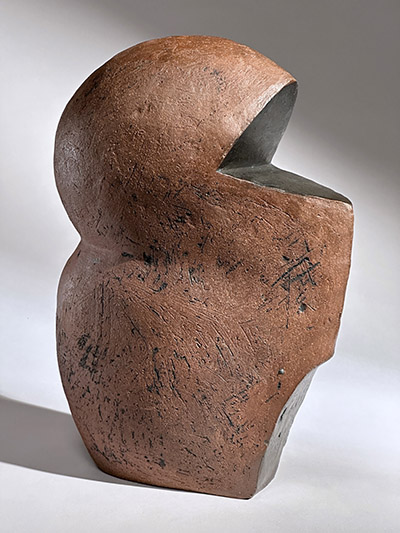 QUIET FORM Robert Pulley was born in Wabash, Indiana in 1948. He grew up at the edge of town and the richness of the natural world became his muse. He received a BA degree in art education from Ball State University followed by an MA degree in sculpture and ceramics in 1978. His early career included a year of teaching art, an artist residency, starting and running a functional pottery in Southern Indiana, and making raku pottery at a log cabin for two years. After graduate school he, his wife and young daughter moved to Columbus, Indiana where he set up a studio and taught art in the public schools. In 1983 they purchased an old farm house with 2.3 acres. There, they turned an outbuilding into a studio, planted gardens, trees and sculptures and raised their children. 38 years later, they live at the same address. The lawn has become a sculpture garden, the trees they planted are up to 80' tall, and their children are grown. Robert has shown professionally for 50 years. His sculptures are in many private and public collections, including several museums.