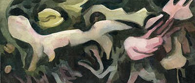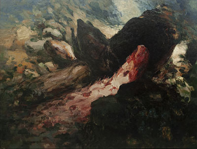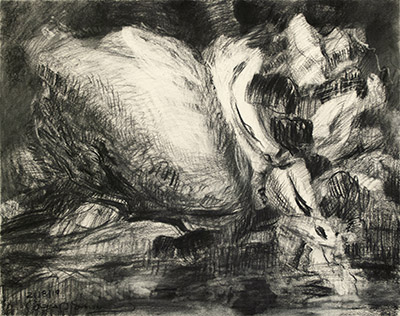 Of his work Saulnier states: These visceral paintings evolve a genealogy of the figure in landscape. Transitions between figure and ground are continually investigated but remain uncertain and permeable. Bodies in these works exist as haptic events. Yet these forms have mass and weight; they demonstrate a grounded carnal presence. Truncated forms achieve temporary integrity, a kind of circumspect vitality and position. My paintings evolve from sets of drawings and studies in oil. When making exploratory works, I often respond to subtle intuitive sensations that I cannot quite understand. I am taken in, following some potential event of becoming visible. Pursuing an emotional connection to my seeing I discover formal configurations. At the same time, the paintings also fill up with unsettled seeing. Any viewpoint I may establish continuously decays and multiple arrays of sensation refuse to settle. Tensions between visibility and invisibility are thoroughly woven into the work and structure how the viewer receives the image. This fullness of seeing and not seeing—this is the painting—it is always cycling states of fugitive sense. Painting is frequently thought historically, and viewers of the work often comment upon the dialogue with historical paintings. This is both understandable and troublesome. I think it is inadequate to see these paintings only as vehicles for appropriations, memorials, or documentary projects. For me, finding our historical being as an emotional condition is the most important goal. Living emotionally is a continuous condition of our being. Figure-landscape, landscape-figure, always, always in tension, always new. I want to make images where active perception delays habits of categorical thinking. I hope the paintings directly speak to the viewers body and create generative aesthetic experiences. Though I love the way visual art calls forth interpretive responses, I try to make work that resists analysis while being absolutely specific in form. Painting lives best, meaning more deeply, when it devours theory.