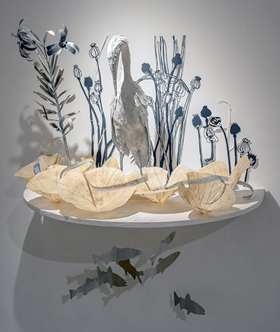 Stephanie Garmey creates imagery inspired by her collection of natural objects and materials and taxidermy animals. Her meditations on nature use a variety of media approaches: constructions and installations, book arts, painting, cut paper, embroidery, encaustics, wood, glass, drawing, and light. Garmey has received individual artist’s grants from the Maryland State Arts Council in Crafts and Painting and the Mayor's Advisory Committee on Arts and Culture in Painting. She has attended residencies at Alfred and Trafford Klots Residency Program in Rochefort - en - Terre, Brittany, France and Vermont Studio Center in painting. She will be an Atelier Artist in Residence in Spring 2024 at the Westcove Estate in Ireland. Important painting and installation exhibitions include numerous solo shows in the Mid-Atlantic region. These include “Pathways” at Hillyer Gallery (2020) in Washington, DC; “Indigo Dream” at the Delaware Contemporary (2017) in Wilmington, Delaware; “Edge of the Forest” at Vis Arts (2015) Rockville, MD, “Wetlands” (2013) at the Maryland Institute College of Art; “Forest Floor” (2011) at Stevenson University, Baltimore,MD; and “Swamp and Gardens” (2002) at Loyola College, Baltimore, MD. An upcoming solo show will be in the Fall of 2024 at Manor Mill in Monkton, MD. Garmey teaches in the Drawing and General Fine Arts Departments at the Maryland Institute College of Art. Current classes taught are Mixed Media Book Arts, Nature Drawing, and Paper Cuts 2D to 3D. Stephanie Garmey received her MFA degree from the Maryland Institute College of Art - Hoffberger School of Painting where she studied with Grace Hartigan.