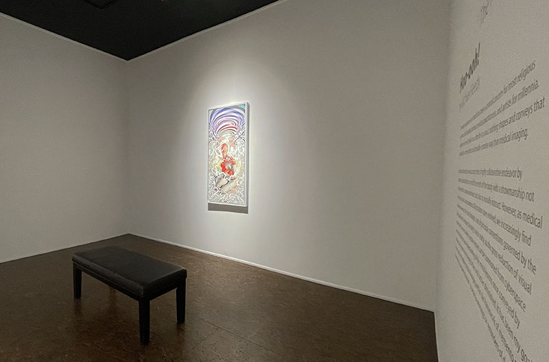Of his work the artist states: "The nature and process of death has been a central concern for most religious traditions, philosophical schools, medical practitioners, and artists for millennia. Regardless of one’s belief in an afterlife or a soul, nothing shapes and conveys that physicality in a more direct and morally complex way than medical imaging. Anatomical illustration was at one time a highly collaborative endeavor by anatomists and artists to reveal the secrets of the body with a showmanship not only intended to amaze onlookers, but also to morally instruct. However, as medical imaging practices and anatomical illustration have evolved, we increasingly nd ourselves viewing the body through a set of pictorial conventions governed by the principal desire to escape the body’s harsh reality via the gross reduction of visual information. In an era where virtual corpses can be summoned from cyberspace anytime/anywhere, our understanding of the moral lessons once conveyed by anatomical images is only being further and further diminished. It has been my goal to reengage and explore medical imaging within the framework of memento mori by employing anatomical models to serve as warnings or reminders of death."