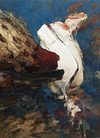 AQUACHROME Quite possibly the oldest form of painting, watercolor persists today, defying narrow categorization and broad stereotype. Practiced for centuries in concept development preliminary to 'finished' paintings made in oil or other scale-worthy durable media, watercolor also found favor with botanists, illustrators, and portraitists, and was applied to varied and countless surfaces. The nature of the media itself represents a delicate and dictatorial transparency, fluidity, and a potential for expressive spontaneity. This not only makes it an ideal vehicle for contemporary art, but also one of training, intensity, philosophy, and play for any who practice it. Where an artist can easily dominate other painting media, forcing a will through viscous layers into a work of art like taming a wild horse, with watercolor there is dialog, compromise, and undeniable forthrightness. In this way the artist practicing watercolor works with a tiger in the room. *Along with watercolor, works in gouache, ink wash, and other similar media were accepted for consideration as a subset of the broader Manifest painting biennial. For this exhibit 53 artists submitted 193 works from 22 states and 4 countries, Belgium, Canada, France, and the United States. Nineteen works by the following 13 artists from 12 states were selected by a blind jury process for presentation in the gallery and the Manifest Exhibition Annual publication. Presenting works by: Gary Barton Shawn Edrington Ed Ferszt Antonio Gonzalez-Garcia Janet Gorzegno Melissa Gwyn Mikey Hernandez Olga Kosheleva Sophie McVicar Tanya Pirasteh Scott Teplin Ripley Whiteside Dalton Zheng