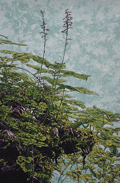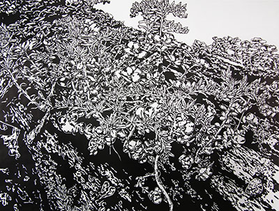 PRINTED LANDSCAPES Kathy L. McGhee is a professor in fine arts, and Area Coordinator of Printmaking at the Columbus College of Art & Design where she teaches introductory, intermediate and advanced printmaking. McGhee is a practicing printmaker who has shown her work both nationally and internationally. She received the Greater Columbus Arts Council’s International Residency Award in 2005 and traveled to Germany. In 2010, she was a participant in the Xi’an International Printmaking Workshop held at Xi’an Academy of Fine Arts in China, and in 2012, she received an international residency through the Ohio Arts Council. In 2019, she was an artist in residence at the Great Smoky Mountains National Park, Tennessee and also at the Badlands National Park, South Dakota. She holds a BS in plant biology from Ohio State University, 1997; a BFA in drawing and painting from Ohio State University, 1997; and an MFA in printmaking from Ohio State University, 2000. Of her work the artist states: "My printmaking practice is inspired by the natural world. I create work inspired by my observations. These images are not necessarily of vast vistas but often will consist of small moments of beauty and of relationships existing between plants as well as the earth. I am intrigued not only by the experience of being in nature but also of the visual patterns created as organisms coexist. This exhibition was selected from among 166 proposals submitted in consideration for Manifest’s 20th season.