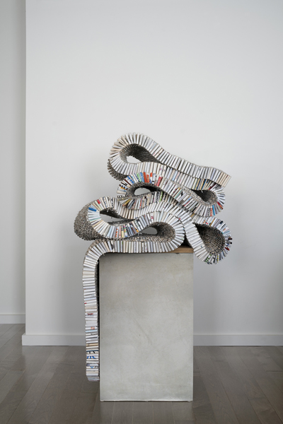 PAPERWORK Paper is one of the first areas of creative possibility that we encounter. It is a surface made of pulped cellulose, created to take on marks, incisions, and material. It carries between us our messages, sketches, lists, and sums—all forms of externalized memory, thoughts, emotions and knowledge. It is bound into books and packed into clean sheaves. Stacks of paper clutters desks, fill spiral journals crammed into backpacks. Wads of tissue-thin paper napkins wait at the bottom of fast food bags to wipe away crumbs and be thrown away. Beautiful paper, special paper, waits in files and drawers for the right project. With the right marks adorning its face, paper can become precious. Duplicated enough, it becomes essentially, and importantly, disposable. Beyond its use as a surface, it can be folded, molded, out of its flatness into an object, a something in its own right, and not just a vehicle. Great satisfaction is found in pressing paper’s folded edge into a crease. There is beauty in the sound of it slicing. Paper exists in extremes, as the most disposable of trash to something exquisite, preserved, and sacred. We enrich and destroy paper, and it allows us to shape it into many things. PAPERWORK is an exhibit of works on paper, of paper, and about paper in all of its uses. For this exhibit, 137 artists submitted 521 works from 33 states and 5 countries, Brazil, Canada, Germany, Mexico, and the United States. Seventeen works by the following 15 artists from 12 states were selected by a blind jury process for presentation in the gallery and the Manifest Exhibition Annual publication. Presenting works by: Briana Babani Jane Barrow Jessica Beels Jenny Challa Colleen Couch Paula Damm Katharine DeLamater Rebecca Hutchinson Laura Makar Michele Heather Pollock Jennifer Seo Emily Sheehan Kathleen Thum Jacob Watts Cassie White