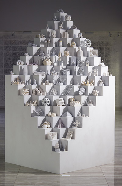 MODULAR Modules are discreet objects that can be assembled into a larger body. This same body can be broken down into its parts, re-configured, re-assembled, broken down again, made whole again. A module can be a mass-produced part, a building block, an amino acid, an atom. Modular construction allows for streamlined assembly, easy repairs, iterative outcomes. There is comfort to be found in the uniformity of repeated design, in the even aisles of the supermarket, in the ease of exchanging a burnt-out fuse, the simplicity of sliding customized part B into slot A. Modules are configurable into a myriad of possible forms, but to be effective they need to be iconic, repeatable, replaceable. To a degree, they must conform to a structure to be a successful puzzle piece. How different is that piece allowed to be before it wreaks havoc, like a misfolded protein? Can variety be found within standardization? How many parts can be exchanged before the body is different? What relationship does the body have to its parts? Can’t everything be broken down into pieces? MODULAR is an exhibit of works of art made of or about individual components, about reconfiguration, about building blocks, about the parts of the whole. For this exhibit, 46 artists submitted 152 works from 24 states and 5 countries, Armenia, Georgia, Germany, Netherlands, and the United States. Eight works by the following 8 artists from 8 states were selected by a blind jury process for presentation in the gallery and the Manifest Exhibition Annual publication. Presenting works by: Vibrata Chromodoris Kyle Cottier Andrew Martin Maggie Nowinski Evelyn Politzer Shasti O’Leary Soudant Catherine Wetzel Leah Woods