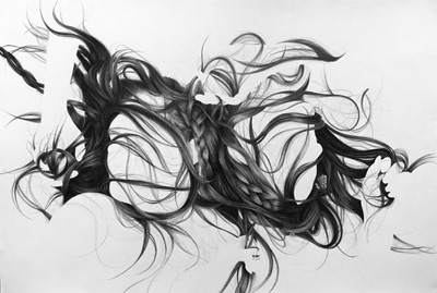 HAIR Hair is a plaything. The essential element of any doll’s lovability, it is the part of a doll that can be most actively played with in facsimile to life. You can brush it, braid it, style it, and cut it at least once. Hair’s physicality is engaging. It associates closely with beauty, and it is significant to one’s personal and cultural identity. The look of it, the light on it, its movement, is all seductive. It also occupies a strange space between aliveness and being a thing. Eyes may be the most engaging feature of a face, but eyes look back and are thus dangerous. Hair on the other hand is easily observed, objectified, and fetishized. It has personality, but no way to think about us. Its wearer, its owner however, certainly can. Hair is a product of the body, created by and sprouting from it. It is animated by the person or creature who wears it, and by external forces. When removed from the body its nature shifts. Hair (or fur?) when stroked on a pet is soft and comforting for both parties—we cuddle and bring it close. Hair in the drain, in one’s food, or cut from a vacuum cleaner brush rouses disgust. With regard to its “thing-ness”, the boundary between “fiber” and “hair” is very thin. Creating certain hairstyles is sometimes indistinguishable from weaving or sculpting. Hair from an animal is made into clothing. Even human hair can be formed into wigs and extensions. Sometimes hair from a loved one is braided into keepsakes. This show offers the opportunity to explore a wide range of apporaches to the subject of hair in visual art. For this exhibit 107 artists submitted 342 works from 37 states, Washington D.C., and 2 countries, Belgium and the United States. Eleven works by the following 10 artists from 8 states and Washington D.C. were selected by a blind jury process for presentation in the gallery and the Manifest Exhibition Annual publication. Presenting works by: Tricia Butski Christian Faur Amber Ford Sam Grabowska Jada Imani M Wes Ladner Julia Leggent Jenn Levatino Kris Powell Jon-Joseph Russo