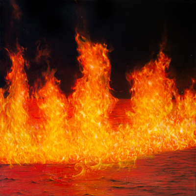 PROMETHEUS Fire is a symbol of transformation and enlightenment. Its mythic gifting provided the spark of human development, representing knowledge—and hubris. There have always been two sides to fire, the creator and the destroyer. In our modern world, our language reflects the means of controlling fire’s destructive power: fire trucks, fire drills, fire escapes, and fire extinguishers. Despite the risk of fire’s rampage however, it is equally as beneficial as it is dangerous. Fire provides heat for cooking, manufacturing, comfort, and incandescence for light. Certain creative technological pursuits such as metallurgy, pyrography, ceramics, and glass working are enabled by fire. Fire burns parallel to humans and has come to symbolize parts of our culture outside of utility. Anger, the feeling that triggers our adrenaline and brings heat to our faces, finds metaphor in fire’s uncontrollable spread. Anxiety, stress, or embarrassment plunge us into the sensation of boiling air. The formal qualities of colors can emulate and even inspire ‘hot’ feelings, with warm reds and oranges representing and even feeding irritability, hunger, and arousal. Heat has emotional reality, as well as physical. As we are witnessing this very day, in January of 2025, fire is indiscriminate, as horrific as it is empowering. It is, perhaps, humanity's oldest friend—and enemy. Our hearts go out to those affected by the fire still raging in California. For this exhibit 85 artists submitted 234 works from 33 states, Washington D.C., and 4 countries, including Canada, Iran, Italy, and the United States. Eleven works by the following 9 artists from 8 states were selected by a blind jury process for presentation in the gallery and the Manifest Exhibition Annual publication.