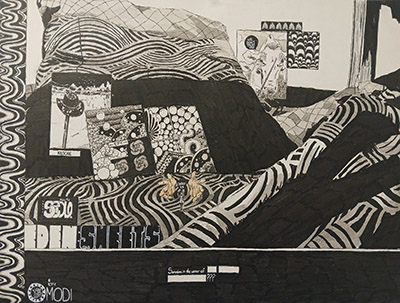 SLEEP We need to rest. There is no way to avoid the simple fact that despite our desire or need to be awake and working, eventually the need to lie down will overcome us against our will if ignored long enough. When we do sleep, we are better for that rest. There are times in our life where our connection to sleep is acrimonious. We fight it off with caffeine, light, or music until we are shaking and delirious. Toddlers unwilling to nap and miss out on life do this, as do workers staying awake for a shift. Other times we court it desperately, trying to meet it within fleeting windows between work and childcare, swallowing medicines, meditation, and chamomile while playing white noise at a low thrum. When we sleep we get to dream, our brain pulling apart and rearranging the desires and events of our lives into surreal and revealing collages. Even while conscious, the leisure to let our minds wander without a specific task permits great creativity and insight. Dormancy isn't necessarily idleness—for seeds, dormancy is a what allows them to spread and survive, and a fallow field leads to rejuvenation. SLEEP is an exhibit of works about rest, dreaming, and where and when we can lay down our heads. For this exhibit 109 artists submitted 288 works from 31 states, Washington D.C., and 4 countries, including Austria, Germany, Israel, and the United States. Eleven works by the following 9 artists from 8 states were selected by a blind jury process for presentation in the gallery and the Manifest Exhibition Annual publication.