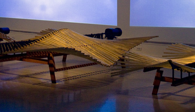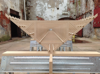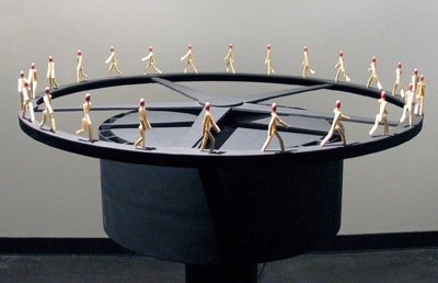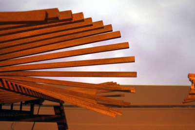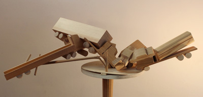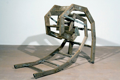 main gallery REWORK This solo exhibition of six of Artistotle Georgiades' sculptural works is one of six selected from among 150 proposals submitted for consideration for Manifest's ninth season. Of his work Georgiades states: In today's economy more modest ideals abound and one must be prepared to find alternative means to an end. In my new projects and those planned for the future I find my selection of materials to be based more on common objects and materials that are approaching obsolescence and are of little value in their present state. Most of my current works have an intention or ambition that has been redirected for one reason or another; the emotional content of this change in direction is the subject of this new work. Bio: Aristotle Georgiades received a B.F.A. from the University of Michigan and an M.F.A. from the School of the Art Institute of Chicago. His work ranges from issues of male identity, labor economics, and more recently, the changing American landscape in a post-industrial economy. He works in wood, metal, and recycled architectural materials. Georgiades has exhibited his sculptural works nationally and internationally in both curated group and solo exhibitions. His work has been reviewed in various publications including Art In America, Sculpture Magazine and The Chicago Tribune. He is also part of the collaborative public art team Actual Size Artworks which has been producing large scale permanent and temporary public works for over fifteen years.
