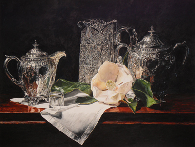 Cystal & Silver w Magnolia on Linen by Laurin McCracken