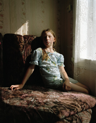 drawing room HOLDING ON This solo exhibition of eleven of Nadia Sablin's photographs is one of six selected from among 150 proposals submitted for consideration for Manifest's ninth season. Of her work Sablin states: For the past six years, I have been working on an extended photographic series in Russia and United States. Titled Together and Alone, it was completed in 2011. This body of work is based on the idea of a search for one’s identity and the pain of separation from childhood. By making portraits of girls and women, I search for a way to reinterpret myself as an adult without losing the magic of childhood. By including photographs from both the former Soviet Union and the United States I am creating a reality whose location is psychological, rather than geographic, in nature. The resulting images are a blend of observation, performance, and autobiographic exploration. As a Russian-born artist, I closely relate to the format of the fairy tale, incorporating it into the imagery of the photographs and into the prose poem that introduces the work: "I was conceived, mistakenly, as a twin, although nobody knew this but me. There were two of us, in the womb, identical from our underdeveloped heads to our microscopic toes. She was a Russian girl, just like me, a secretly Jewish Russian girl, prone to emotion, impatient, bookish. She hid. I knew her well before we left. We conspired on hot days in the village, outwitted the demons in the marshes, looked for treasure among the reeds. We parted ways in '92, when I was brought to greener pastures, great-grandmother's pillows and iron skillet in tow. Our life packed in six check-in suitcases, three carry-ons. I was alone here in your new world, so I tried to replicate her, mold her out of my mother, out of American girls, out of mirrors. I search for her in images by Dutch painters, in stories by Marquez and Bulgakov. She lives off drywall, in an attic, in a well; she ascended to heaven, she is a mother by now, she walks the outskirts of St. Petersburg as a whore, she is still a child, while I've grown bigger, and am good at paying my bills on time. She is still breathing magic. She, the other one, is beautiful. Her braid is down to her feet like my aunties'. She brushes her hair one hundred times before bed. A wolf guards her virtue. I see her in the eyes of strangers. Her gestures overtake theirs for a split second, and she is gone before they know what has happened. With my trap, I wait for her to appear there, and if I'm quick enough, if I press the button at the right moment, none of this will be real. We will be together again, she and I, conspirators, sisters, laughers of derisive laughter, whole." Nadia Sablin was born in the Soviet Union and spent her adolescence in the American Midwest. After completing an MFA degree at Arizona State University, she now lives and works in Brooklyn, NY and St. Petersburg, Russia. Her photographs have been shown at the Griffin Museum of Photography, Wall Space gallery and Jen Bekman gallery among many others.