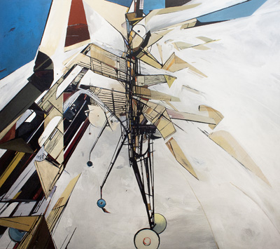 main gallery + drawing room KINETICA Sometimes we take movement for granted. The fact that the Earth is rotating at 1000 miles per hour, or hurtling through space around the sun at 67,000 miles per hour goes practically unnoticed by everyone, except perhaps when one stops to appreciate just why the sun rises and sets, or why we experience seasons. Yet everything about our lives, and life on Earth, is inextricably linked to movement of one form or another. In honor of the phenomenon of transitioning through space, relative location, and action (and reaction), Manifest invited artists, designers, and engineers to submit to this competitive juried exhibit works which incorporate literal movement (kinetic in one form or another), as well as non-moving works that depict or are clearly about physical movement. For this exhibit 139 artists from 32 states and 13 countries submitted 274 works for consideration. Ten works by the following 6 artists from Illinois, North Carolina, and Ohio were selected for presentation in the gallery and catalog.