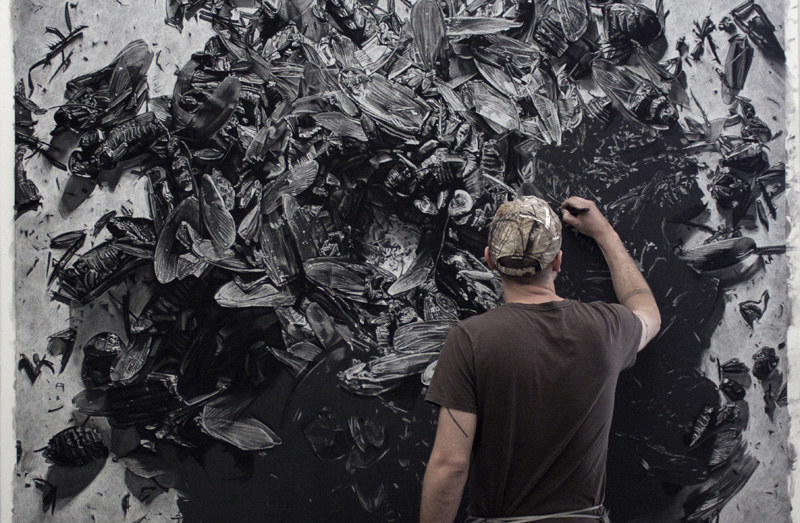 main gallery AUNIVERSAL PICTURE This solo exhibition of Shelby Shadwell's drawings is one of six selected from among 150 proposals submitted for consideration for Manifest's ninth season. Shadwell has participated in numerous Manifest projects in the past, including the International Drawing Annual 6 which features his work on the cover. Of his work Shadwell states: My practice is firmly rooted in large scale observational drawing. I have always been interested in facilitating a dynamic interaction between representation and abstraction since I became familiar with the work of Vija Celmins. Although the particular subject of black plastic trash bags is mostly emphasized in this body of work, I am also moving towards other content including the abstraction of entomological specimens. Bio: