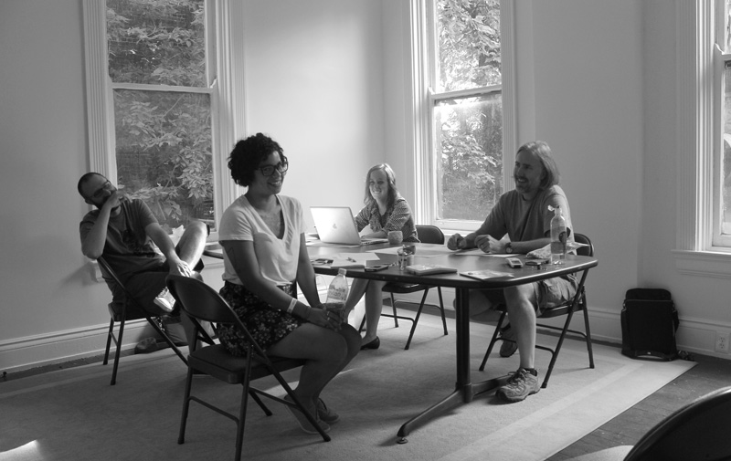 Alexandra Franz (instructor and studio moderator), Erin Corley (operations manager), Brigid O'Kane (co-founder, board member), Chris Coy (board president), Gabe Applegate (board member), Laura Blackorby (board member), William Williams (board member), Debbie Heuer (former president, emeritus board member), Carrie Pollick (board member), Katie Baker (senior exhibition coordinator and curatorial assistant), Adam Mysock (education and studio program manager), Andrew Beiting (board member), Jason Franz (co-founder, executive director), Vernay Monroe (program assistant).