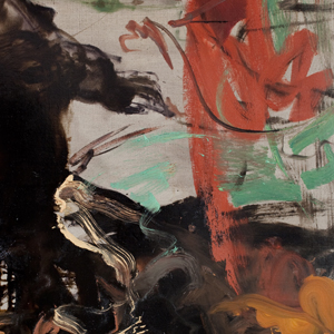 In short, my paintings are present and have a presence. There is an animation of colors and lines where forms emerge and diverge, while creating various spasms and sensations. My paintings smell of their oily surface; they are dry and soft, opaque and transparent. They are bold and visceral and lost in disclosure and concealed in forms. The surface is palpable or thick, dark diminutive and murky, bright shiny colors, muddy light, glassy and matt. The dry and the wet linen drips, it ripples, and it undulates; it swirls with curvilinear motions. The violent and the intense activity of the swoosh brush is smashed delicately while dancing schizophrenically–it screams forcefully in space revolving for attention.