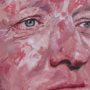 This painting was created using a paint technique that starts with thin washes and stains of acrylic paint, gradually building up to thick strokes and globs of oil paint. The surfaces of the paintings are meant to create a continual shift from representation to abstraction depending on the distance they are viewed from. The perspective or angle the painting is viewed from creates a variety of visual experiences and illusions. At a great enough distance all paint marks disappear and only an image remains.