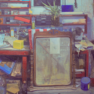 The places portrayed in my paintings are silent studio settings and scenes inside my home. I am inspired to make these paintings by the light acting on everyday objects and the geometric relationships that lie therein. Paintings begin as extreme simplifications of my subject and then become increasingly focused as each layer and mark begins to accumulate toward the complexity of what is being observed.