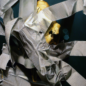 Thus far, the paintings have served as a personal means of documentation, wherein composition and symbolism are used as a vehicle to create a pictorial representation of my "story." I also look to comment on the contradiction between creating realistic imagery and portraying emotional rawness, as well as the uncompromised truth in the imagery versus the symbolic ambiguity. Each work is painted photorealistically, so instinctively there is an emphasis on technique. While I acknowledge that at first blush the thing that jumps out to the viewer is the how the painting is painted, the emphasis for me is to portray a sort of emotionality through the use of symbolism. This current body of work contains references to classical symbolism, such as the egg being a symbol of fertility and the monarch being characterized symbolically as the carrier of the soul. However, personally symbolic objects also appear, such as a pear, which represents my presence in a work.