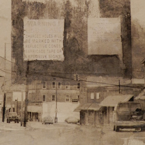 The photographs I take and use in my artwork begin to reveal a story of a particular place in time. A place where time has stood still yet at the same time a place that has evolved, changed or even disappeared. The images I use are not just about the environmental effects of Mountaintop Removal mining taking place within the Appalachian region but are about revealing the history of these locations; past and current. My artwork shows how MTR has transformed the Appalachian Mountains over time to flattened rubble and how small rural towns set in the hollows of West Virginia and Kentucky are currently being diminished or have already been reduced to nothing. It shows how a tragic coal mining accident in Southern West Virginia can tear apart a community with grief and rage and the lengths environmental activists are willing to take to stop the destructive environmental degradation that MTR is having on the landscape.