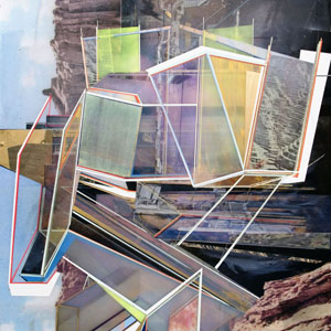 By compressing many layers together I reference a simultaneousness or an informational/visual schizophrenia and look at creating works that are nonlinear abstractions of our everyday interactions with both the "virtual" and the "real". I create nonsensical structures that fluctuate between image and abstraction while referencing the screens that we use to access and view the virtual and place it with in a schism of the material in a frozen flux. Ultimately my pieces attempts to create an abstract representation/interpretation of "a place without space".