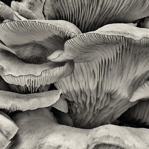 I like the technical side of photography, both in initial capture and in processing and printing, but what I have truly enjoyed is the challenge of macrophotography. I think this type of work is both technically demanding and requires constant attention to design basics of line, shape, value, and texture. Removing color, by processing in black and white, stresses the importance of these basic elements even more. Subject matter that initially seems unappealing can prove to be fascinating on a macro level--a shriveled mushroom becomes an abstract composition. Alternatively, it is a blurred mess. That is the challenge of macro work.