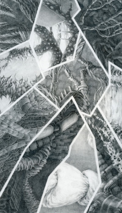 That pathway has allowed me to use art to incorporate the disparate knowledge Ive accumulated over the course of my life. It allows the miracle of cell physiology to become intertwined with the technical rhythms of playing cello, drawing from life, and comic book panels. The knowledge by itself is only the backdrop for my art making process. Without the conversation of art fueled by questions, it is simply data stuck in my brain. When I thread together concepts, images, and felt experience with questions I start to create alternate worlds for viewers to sink into and discover. These questions do not just ask, but appreciate where my technical skills can support me, clarify intention/purpose, and have the potential for many interesting answers."