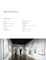 Through nine seasons Manifest Press produced 74 full-color catalogs documenting the works selected for every exhibit presented in our galleries. Starting with season 10 (fall of 2013) we shifted to the design of one much larger high quality hard-cover publication retrospectively documenting each entire season of exhibits, artists, and works shown.