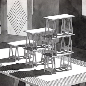 statement In my practice, I investigate the connections between the hidden meanings within astronomy and mathematics. As an artist, I understand myself as an archeologist, one that is enthusiastically excavating imagined ancient sites of history. Within this mesmerizing realm, imagined constructions that are based on Berlin's urban architectural insanity, exist as sites for the cryptic rites and rituals of secret societies and arcane religions. I believe that how we discover ideas parallels how we discover our daily reality; through personal experience. An idea is the combination of personal perception and conceptual thought, and it is the job of the artist to select the ones that work, and discard the ones that do not. I do not seek out answers for the mysteries that I have discovered. Rather, the journey itself is the goal, and somewhere down the road I hope to find that one moment of clarity, that one haunting image, that one idea that can become the next drawing.
