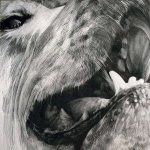 These drawings are confrontational and contemplative. They demand reverence and attention from the viewer but allow time and space to question your response. Their size transforms them from every day and mundane into landscapes where thoughts are made flesh. Mouths become caves. Folds become ravines and shadows are skies. Colour is removed so form takes over encouraging a journey through these places and identifying elements personal and true to you. Although figurative in subject matter, these drawings are abstract in nature. Mark making as a tool to balance what is seen with what can be discovered.